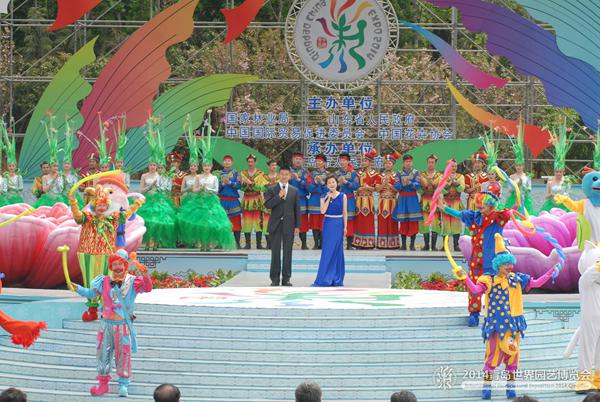 2014年4月25日上午,2014年青岛世界园艺博览会在青岛市李沧区百果山森林公园开幕,全国政协副主席苏荣、国际园艺生产者协会秘书长提姆·布莱尔克里夫等领导出席开幕式,青岛世园会特许生产商代表---广州市我扬文化发展有限公司应邀参加开幕式。