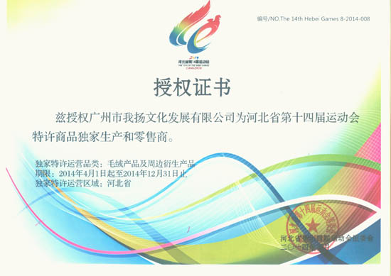 本公司(广州市我扬文化发展有限公司)作为河北省第十四届运动会特许商品独家生产商与独家经销商,现面向社会公开征集特许产品零售商。入选企业在指定商业区域销售省运会特许产品。应征企业应拥有较强经济实力、能在全市范围布局多个零售网点的省运会特许零售商的企业或个人独家加盟,具有两年以上营业及管理经验为佳。零售业态分为以特许专柜形式存在的连锁店、以特许专柜形式存在的大型商超店以及及特许产品专卖店三种。