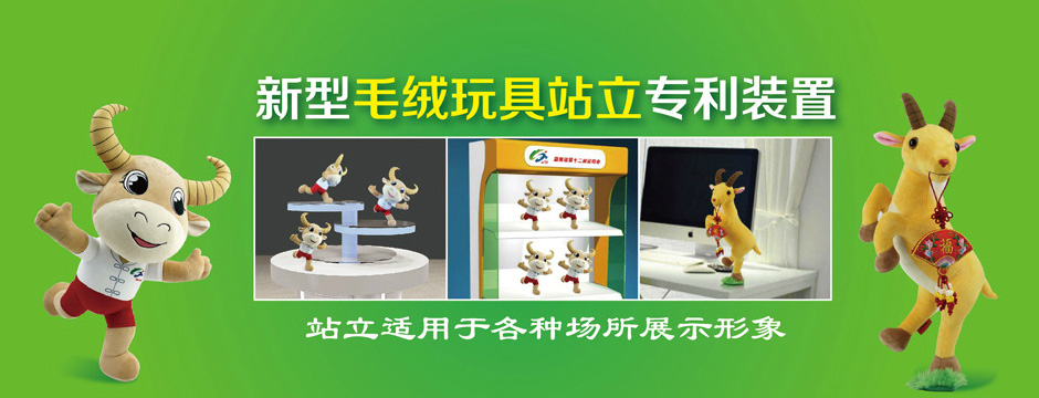 每到春节,以十二生肖制作的毛绒玩具吉祥物都会火遍市场,买个生肖吉祥物既可当玩具,又寓意着生肖吉祥物给每个家庭和个人在新的一年里带来喜庆、吉祥和祈福。目前,春节市场上的生肖吉祥物琳琅满目、五光十色、形象可爱,美中不足的是这些毛绒玩具只能趴着、不能站立,为满足消费者需求,我扬公司研发团队经过反复试验,研制出可站立装置的吉祥物并为此可站立装置申请了国家专利,让消费者看了非常有新意,特别是小孩子玩耍时爱不释手,大受市场欢迎。