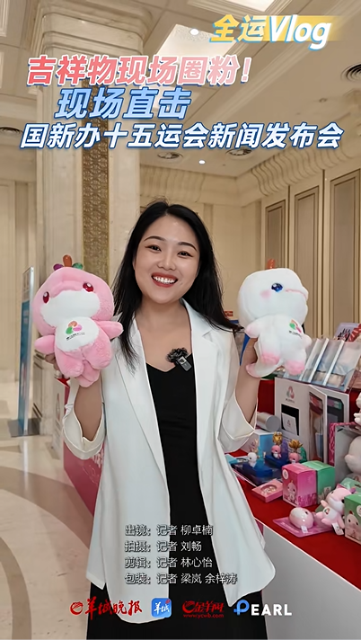 该吉祥物以国家一级保护动物中华白海豚为原型,融合粤港澳三地文化特色,既体现生态保护理念,也传递 “湾区一家亲” 的办赛精神。发布会期间,羊城晚报记者柳卓楠在报道中手持该吉祥物,成为现场关注的细节之一,直观展现了产品的吸引力。