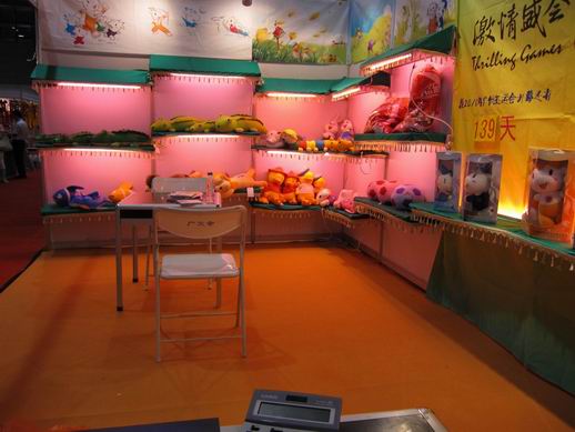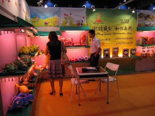 本次参展样品以广州2010年亚运会特许产品为主,形象逼真、栩栩如生的“祥和如意乐洋洋”如五只广州精灵跃然欢跳于展会之中;有着广州2010年亚运元素的旅游用品,手感舒适,实用大方,是各类消费群体的首选;新推出的卡通动物等新品则是低碳环保、无毒无害、引导潮流,是传统玩具行业的一种革新,布艺玩具品种齐全,不断丰富代理商的产品线,为后亚运时代做准备。